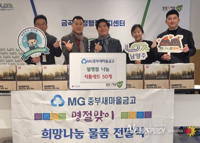 뉴스펀치 박상훈 기자 | 남양주시는 지난 9일 MG중부새마을금고가 지역 내 취약계층이 따뜻한 설 명절을 보낼 수 있도록 식품 선물 세트 50개를 금곡동 지역사회보장협의체에 기탁했다고 10일 밝혔다.