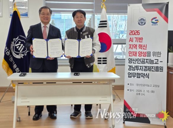 뉴스펀치 박세훈 기자 | 경남투자경제진흥원(원장 오재호)와 양산인공지능고등학교(교장 강경모)는 지역 사회의 미래를 이끌어갈 인공지능(AI) 기술 인재를 공동으로 육성하고, 청년들의 성공적인 사회 진출을 돕기 위해 업무협약(MOU)을 체결했다.