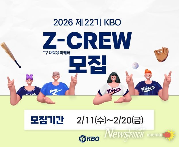 뉴스펀치 박세훈 기자 | KBO가 2월 11일(수)부터 2026 제 22기 KBO Z-CREW(제트크루)를 모집한다.