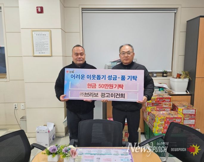 뉴스펀치 박세훈 기자 | 김해시 장유2동 행정복지센터는 지난 10일, 관내 광고대행사인 주식회사 브라보와 음식점 ‘산까치산장’을 운영하는 이건희 대표가 어려운 이웃을 위해 성금 50만 원을 기탁했다고 밝혔다.