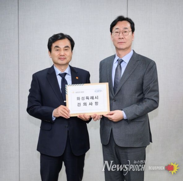 뉴스펀치 박상훈 기자 | 화성특례시는 11일 서울 용산구 국방부장관실에서 안규백 국방부장관을 면담하고, 106만 화성시민의 염원을 담아 수원군공항 예비이전후보지 화옹지구 지정철회와 사업전면 재검토를 요구하는 건의문을 전달했다.