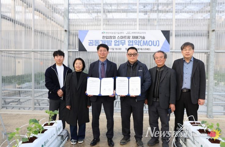 뉴스펀치 이현승 기자 | 천안시농업기술센터는 11일 비에이피코리아와 한입참외 스마트팜 재배기술 공동 개발을 위한 업무협약(MOU)을 체결했다고 밝혔다.