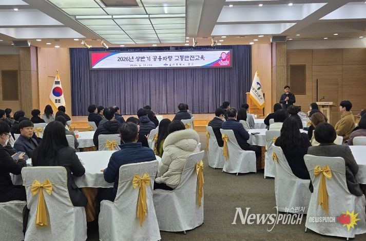 뉴스펀치 김윤걸 기자 | 울산 중구가 2월 11일 오후 2시 중구청 대회의실에서 공용차량 담당자 및 운전자 90여 명을 대상으로 교통안전 교육을 진행했다.