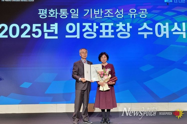 뉴스펀치 박세훈 기자 | 민주평화통일자문회의 예천군협의회(회장 조경섭) 김재숙 자문위원은 11일 안동 스탠포드호텔에서 개최된 ‘2025년 민주평화통일자문회의 의장 표창 수여식’에서 의장(대통령) 표창을 수상했다.