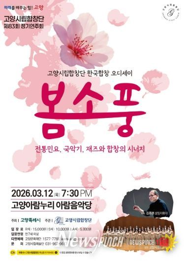 뉴스펀치 박상훈 기자 | 고양특례시를 대표하는 문화사절단인 고양시립합창단이 오는 3월 12일 저녁 7시 30분, 고양아람누리 아람음악당에서 제83회 정기연주회 ‘한국합창 오디세이: 봄소풍’을 개최한다.