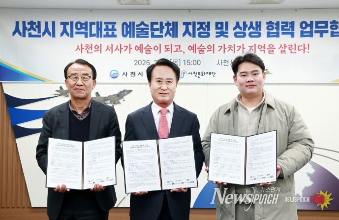뉴스펀치 박세훈 기자 | 사천시는 사천문화재단, 극단 장자번덕과 함께 사천시 지역대표 예술단체 지정 및 상생 협력을 위한 업무협약(MOU)을 체결했다고 13일 밝혔다.