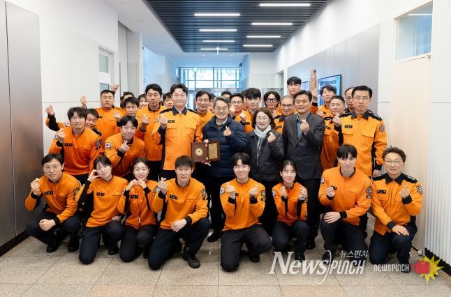 김 지사의 소방서 방문에 맞춰 소방노조에서 준비한 감사패 전달식도 진행됐다.