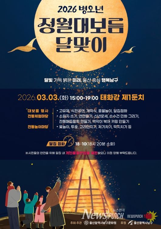남구 관계자는 “정월대보름은 예로부터 이웃과 함께 마음을 나누며 한 해의 평안과 풍요를 기원해 온 소중한 세시풍속이다”며 “이번 행사가 주민들에게 전통문화의 의미를 되새기고 가족·이웃과 따뜻한 추억을 나누는 시간이 되길 바란다”고 전했다.