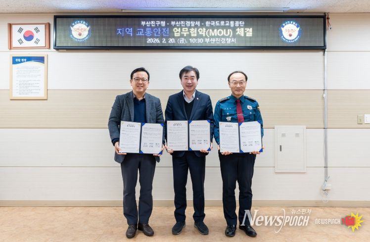 뉴스펀치 김윤걸 기자 | 부산진구는 교통사고 예방을 위해 20일 부산진경찰서에서 부산진경찰서(서장 안현동), 한국도로교통공단(부산지부 지역본부장 이상철)과 업무협약(MOU)를 체결했다고 밝혔다.