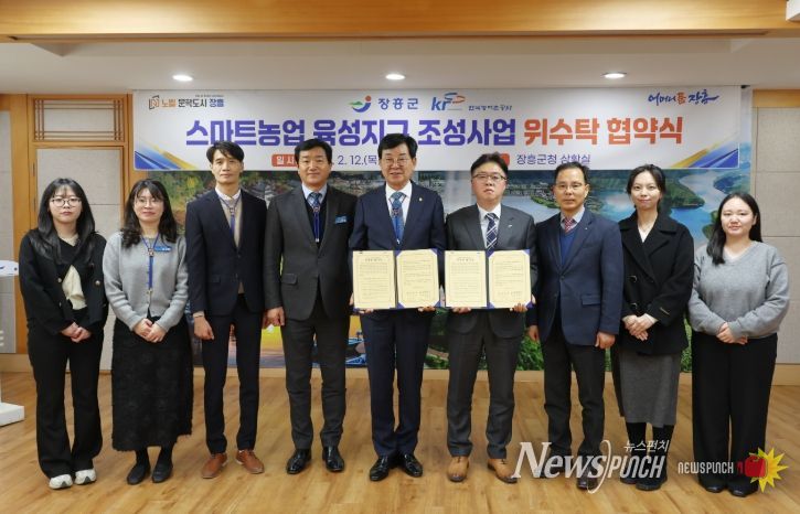뉴스펀치 최영남 기자 | 장흥군은 스마트농업 육성지구의 체계적이고 효율적인 조성을 위해 한국농어촌공사 장흥지사와 위수탁 협약을 체결했다고 밝혔다.
