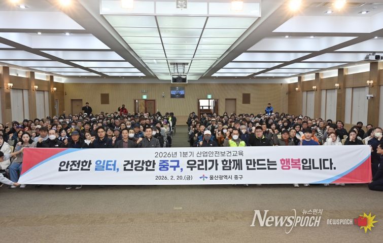 뉴스펀치 김윤걸 기자 | 울산 중구가 2월 20일 오후 3시 중구청 대회의실에서 2026년 1분기 현업근로자 안전보건교육을 실시했다.