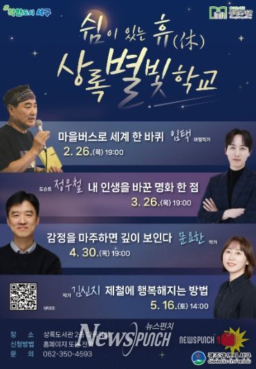 뉴스펀치 김용희 기자 | 광주광역시 서구는 지역 주민에게 사유와 위로의 시간을 제공하기 위해 인문학 프로그램 ‘상록별빛학교’를 운영한다.