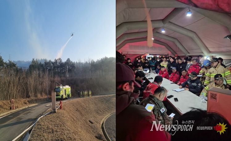 이에 소방은 단순 진화가 아닌 ‘시설 사수’에 초점을 맞춘 전략적 대응에 돌입하여 대응2단계를 발령했으며, 화세를 차단하기 위한 방어선 구축과 함께 비축기지 주변 집중 살수, 헬기 공중진화, 지상 인력 분산 배치 등 입체적 작전을 전개했다.