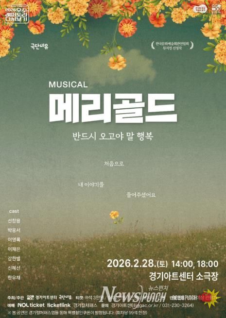 뉴스펀치 박상훈 기자 | 경기도와 경기아트센터는 오는 28일 오후 2시와 6시 경기아트센터 소극장에서 뮤지컬 ‘메리골드’ 공연을 선보인다.