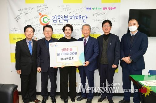 뉴스펀치 김수동 기자 | 김천복지재단은 27일 김천 황금동교회로부터 이웃돕기 성금 200만 원을 기탁받았다고 밝혔다.