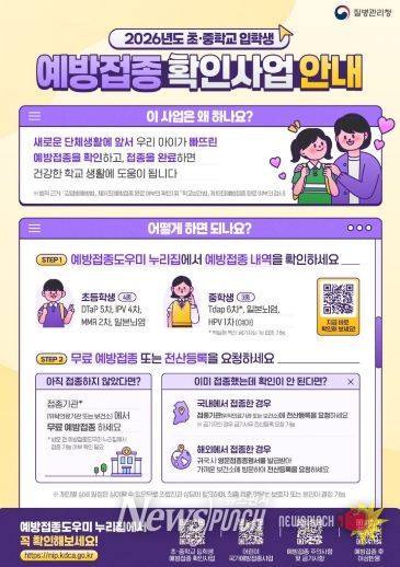 평택시 송탄보건소 관계자는 “초·중학교 입학생은 단체생활로 감염병 확산에 취약한 만큼 입학 전 예방접종 기록을 확인하고 필요한 접종을 완료해 안전한 학교생활을 시작하길 바란다”라고 전했다.