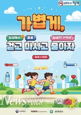 송탄보건소는 비만 예방 핵심 메시지로 ‘가볍게 걷고, 물을 마시고, 나트륨·당·지방을 줄이자’를 집중 홍보하며, 4월 4일 시민건강걷기대회 현장에서도 홍보부스를 운영할 예정이다.