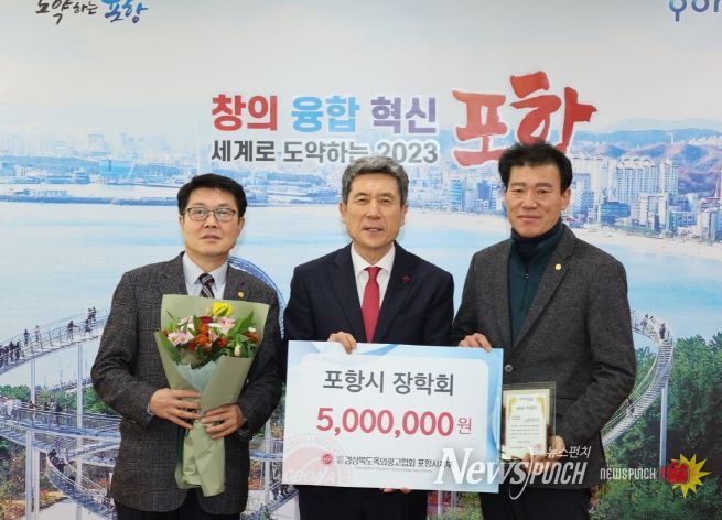 뉴스펀치 김수동 기자 | (사)경상북도옥외광고협회 포항시지부가 27일 포항시장학회에 지역인재육성을 위한 장학금으로 500만 원을 기탁했다.