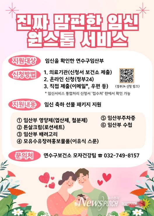 뉴스펀치 정홍균 기자 | 연수구는 전국 최초로 의료기관에서 임신 확인과 동시에 지자체 임산부 통합서비스를 제공하는 ‘진짜(新) 맘편한 임신 One-stop 서비스’를 확대해 운영한다.