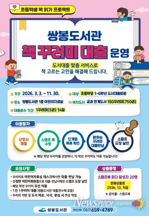 뉴스펀치 김용희 기자 | 여수시립쌍봉도서관은 3월부터 초등학생을 대상으로 ‘책 꾸러미 대출’ 프로젝트를 시작한다.