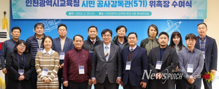 뉴스펀치 정홍균 기자 | 인천광역시교육청은 지난 25일 시교육청 영상회의실에서 학교 시설공사의 투명성과 신뢰성을 높이기 위한 ‘시민 공사감독관 5기 위촉식’을 개최했다.