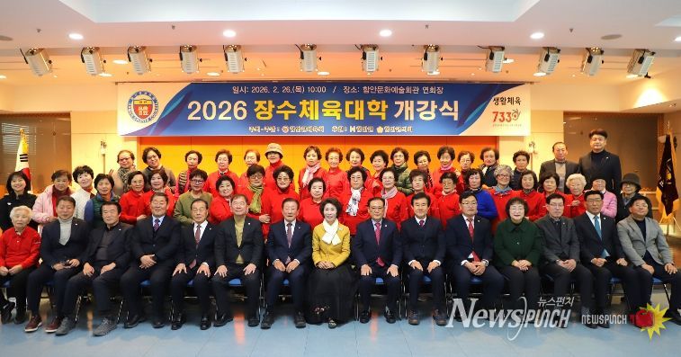 뉴스펀치 박세훈 기자 | 함안군은 지난 26일 함안군체육회가 함안문화예술회관 연회장에서 ‘2026 장수체육대학 개강식’을 성황리에 개최했다고 밝혔다.