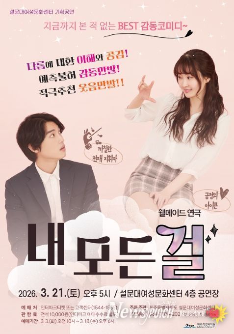 뉴스펀치 김용희 기자 | 제주특별자치도 설문대여성문화센터는 3월 21일 오후 5시 센터 4층 공연장에서 ‘설문대 문화의 날’ 3월 기획공연으로 연극 ‘내 모든 걸’을 선보인다고 밝혔다.