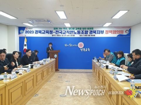 뉴스펀치 김수동 기자 | 경북교육청은 27일 본청에서 전국교직원노동조합 경북지부와 업무 담당자, 임원 등 16명이 참석한 가운데 정책협의회를 개최했다.