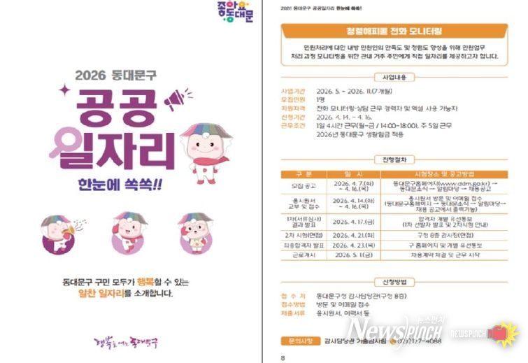 뉴스펀치 박상훈 기자 | 서울 동대문구가 구민들의 구직 활동에 든든한 길잡이가 되어줄 ‘2026 동대문구 공공일자리 안내’ 책자를 제작하여 배포한다.