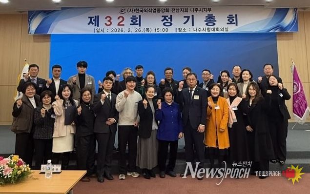 뉴스펀치 최영남 기자 | (사)한국외식업중앙회 나주시지부(지부장 반석진)는 지난달 26일 나주시청 대회의실에서 외식업 관계자와 내빈 등 100여 명이 참석한 가운데 제32회 정기총회를 개최했다.