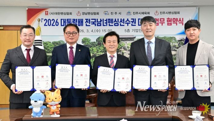 뉴스펀치 박세훈 기자 | 진주시는 4일 시청 기업인의 방에서 ‘2026 제66회 대통령배 전국남녀펜싱선수권대회’의 성공적인 개최와 상호 협력을 위한 업무협약을 체결했다고 밝혔다.