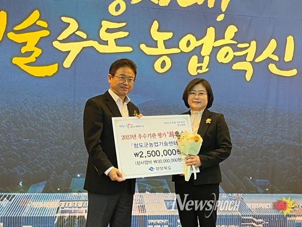 뉴스펀치 김수동 기자 | 청도군은 경상북도 주관 ‘2023년 농촌진흥사업 우수기관 성과평가’에서 최우수상을 수상하는 쾌거를 이루었다.