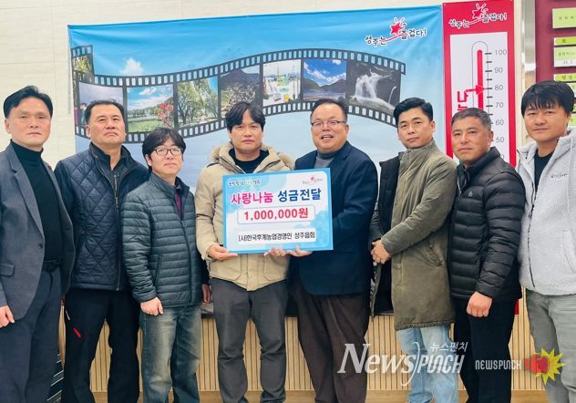 뉴스펀치 김수동 기자 | (사)한국후계농업경영인 성주군 성주읍회는 12월 27일 성주읍행정복지센터를 방문하여 관내 어려운 이웃을 돕는 일에 사용해 달라며 성금 1백만원을 기탁했다.