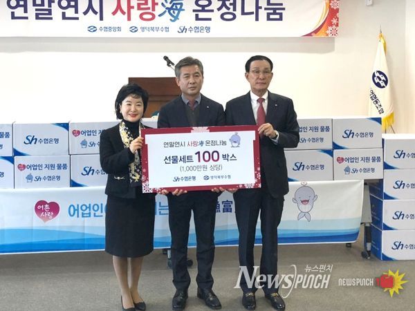 뉴스펀치 김수동 기자 | 영덕북부수협은 최근 수산물 소비위축과 어획량 감소 등으로 어려움을 겪고 있는 어업인들을 지원하기 위해 지난 27일 수협중앙회, 수협은행과 함께 ‘사랑해(海) 온정 나눔’ 행사를 개최했다.
