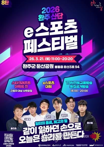 뉴스펀치 최영남 기자 | 완주문화재단은 오는 3월 21일에 완주군 둔산공원 일원에서 2026 완주 산단 e스포츠 페스티벌을 개최한다.