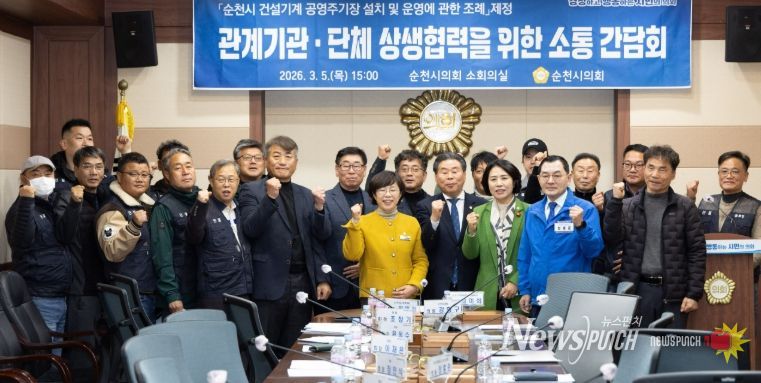 뉴스펀치 조평훈 기자 | 순천시의회 최미희 의원은 지난 5일 '순천시 건설기계 공영주기장 설치 및 운영에 관한 조례' 제정을 위한 간담회를 개최했다.