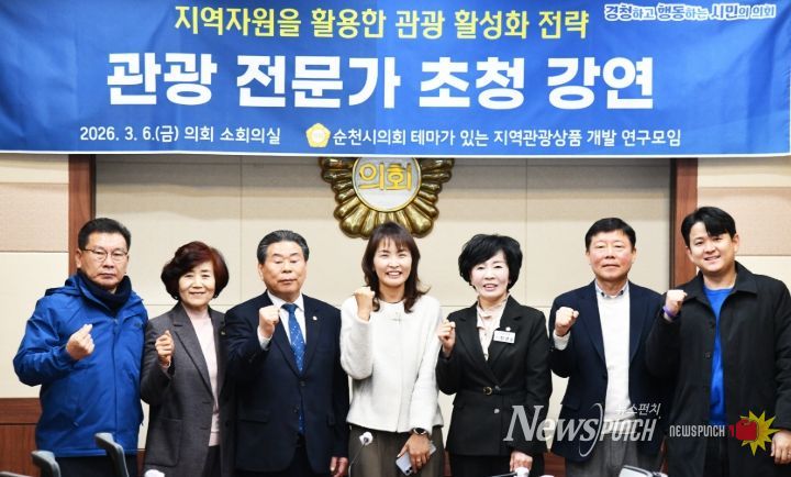 뉴스펀치 조평훈 기자 | 순천시의회는 6일 의회 소회의실에서 ‘테마가 있는 지역관광상품 개발 연구모임(회장 장경순)’ 주관으로 관광 전문가 초청 강연을 개최했다.