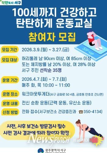 뉴스펀치 최영남 기자 | 광주광역시 서구는 주민들의 건강한 생활습관 형성과 만성질환 예방을 위해 ‘100세까지 건강하고 탄탄하게 운동교실’을 운영한다.