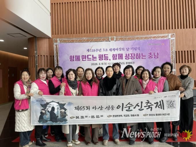 뉴스펀치 이현승 기자 | 아산시여성단체협의회는 9일 제118주년 3·8 세계여성의날을 기념해 열린 충청남도 및 아산시 기념행사에 참석해 성평등 가치 확산과 여성의 사회적 역할 강화를 위한 의지를 다졌다.