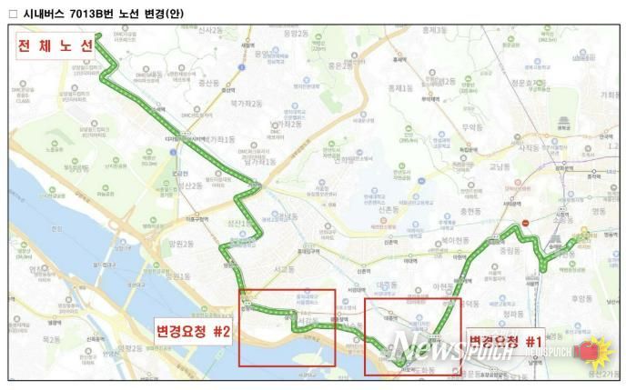 뉴스펀치 박상훈 기자 | 마포구가 지역 내 통학 불편을 해소하고 생활권 간 대중교통 연계 강화를 위해 7013B번과 8775번 버스 노선 조정안을 서울시에 건의했다.