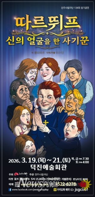 이번 작품은 프랑스 고전 희극의 거장 몰리에르(Molière)의 대표작 ‘따르뛰프’를 전주시립극단만의 시선으로 새롭게 해석한 작품으로, 위선적인 신앙과 권력, 인간의 욕망을 날카로운 풍자와 유머로 풀어낸다.