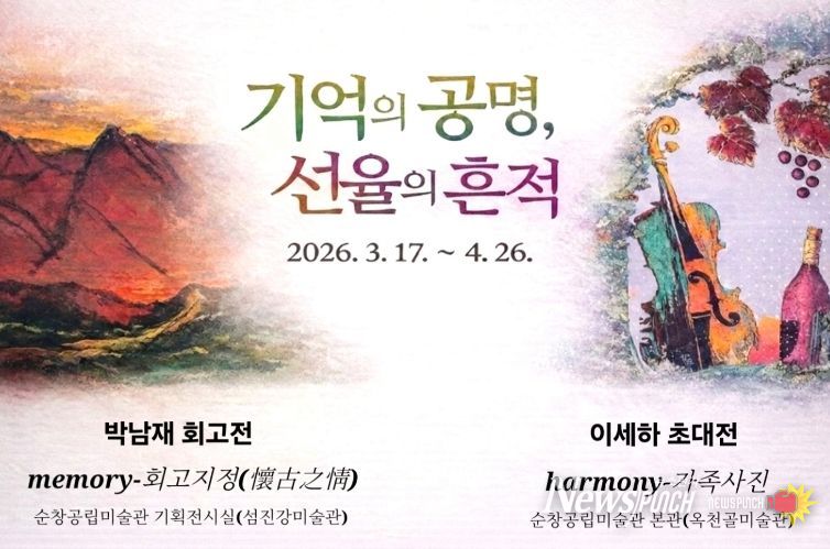 뉴스펀치 최영남 기자 | 순창군은 오는 3월 17일부터 4월 26일까지 한국 자연주의 회화의 거장 故 박남재 화백과 이세하 작가의 기획초대전(사제동행전)‘기억의 공명, 선율의 흔적’을 개최한다.