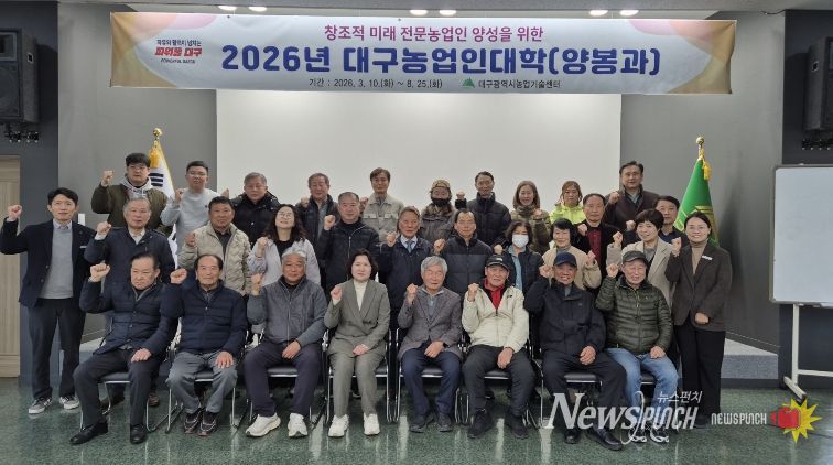 뉴스펀치 조평훈 기자 | 대구광역시농업기술센터는 3월 10일 농업기술센터에서 ‘2026년 대구농업인대학 양봉과’ 입학식을 열고 본격적인 교육과정을 시작했다.