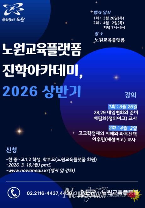 뉴스펀치 박상훈 기자 | 서울 노원구는 공신력 있는 교육 정보 제공을 위해 ‘2026년 상반기 노원교육플랫폼 진학아카데미’를 운영한다고 밝혔다.