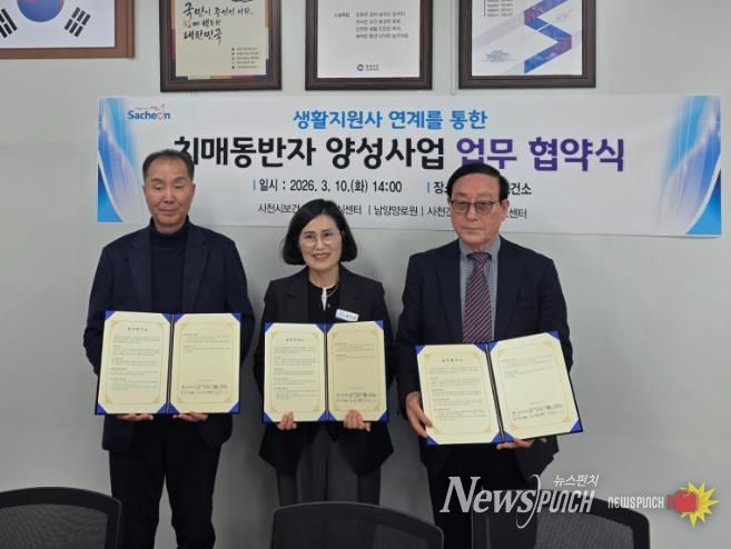 사천시보건소 치매안심센터는 노인맞춤돌봄서비스 수행기관과의 업무협약을 통해 사천시의 치매 안전망 구축에 힘쓰고 있다.
