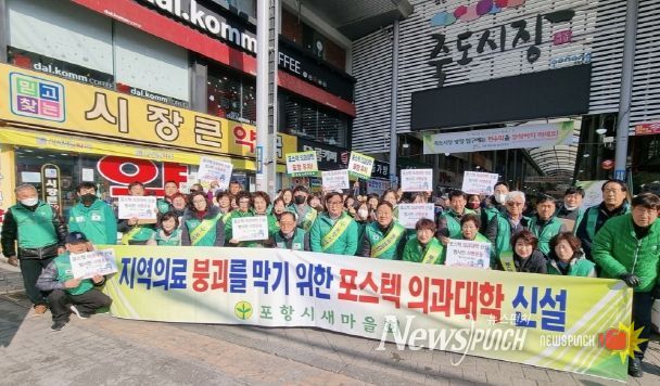 뉴스펀치 김수동 기자 | 포항시새마을회는 28일 죽도시장 개풍약국 앞에서 새마을지도자, 새마을부녀회원 등 총 100여 명이 집결한 가운데, 포스텍 의과대학 설립을 촉구하기 위한 서명운동을 펼쳤다.