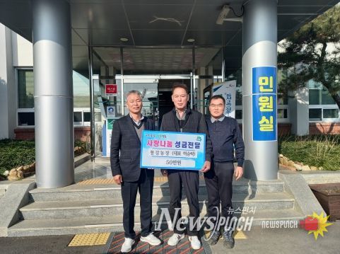뉴스펀치 김수동 기자 | 동강 농장은 12월 28일 벽진면행정복지센터를 방문하여 소외된 이웃을 위해 사용해 달라며 50만원을 기탁했다.