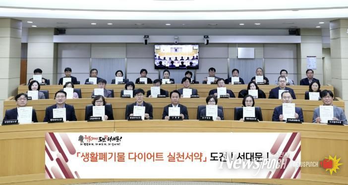 뉴스펀치 박상훈 기자 | 서대문구가 이달 12일 구청 대회의실에서 간부 직원들이 참여한 가운데 ‘생활폐기물 다이어트 실천 서약 챌린지’를 진행했다.