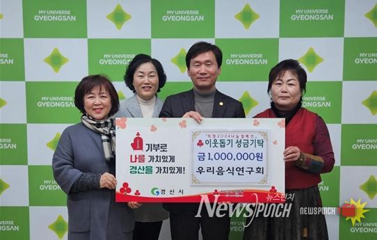 뉴스펀치 김수동 기자 | 경산시우리음식연구회는 27일 경산시청을 방문해 이웃돕기 성금 1백만원을 기탁했다.