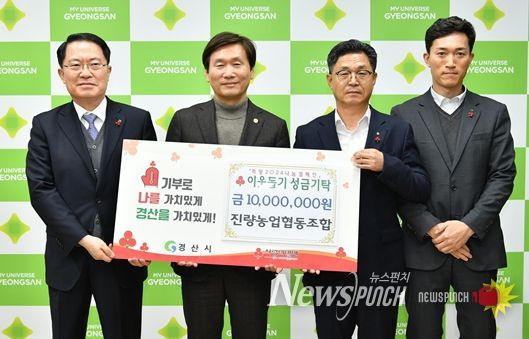 뉴스펀치 김수동 기자 | 경산시 진량농업협동조합은 27일 경산시청을 방문해 소외계층 지원을 위한 성금 1천만원을 기탁했다.
